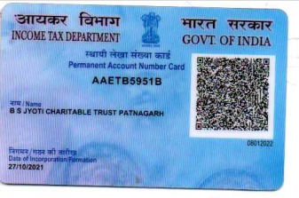 Document Gallery B S Jyoti Charitable Trust Patnagarh Registration Certificate Niti Aayog Certificate PAN Card Fssai Certificate 12A Certificate 80G Certificate